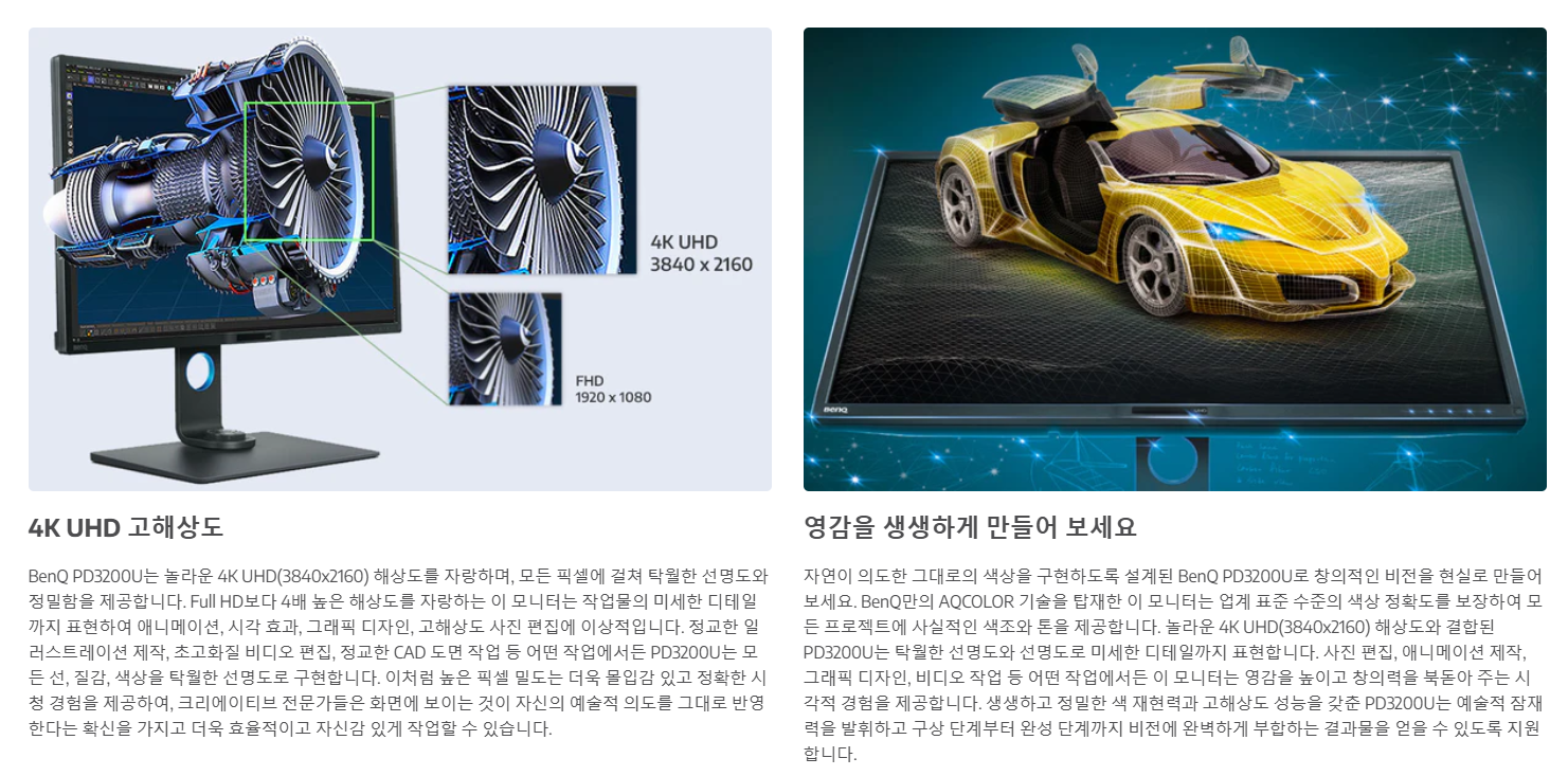 디자이너 모니터, 벤큐 PD3200 4K UHD, 32인치 모니터 듀얼 특징